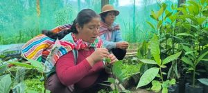 Pobladora de la comunidad campesina de Huata, realizando injerto en el vivero comunal. Fotografía: Isaac Tinoco Paucar
